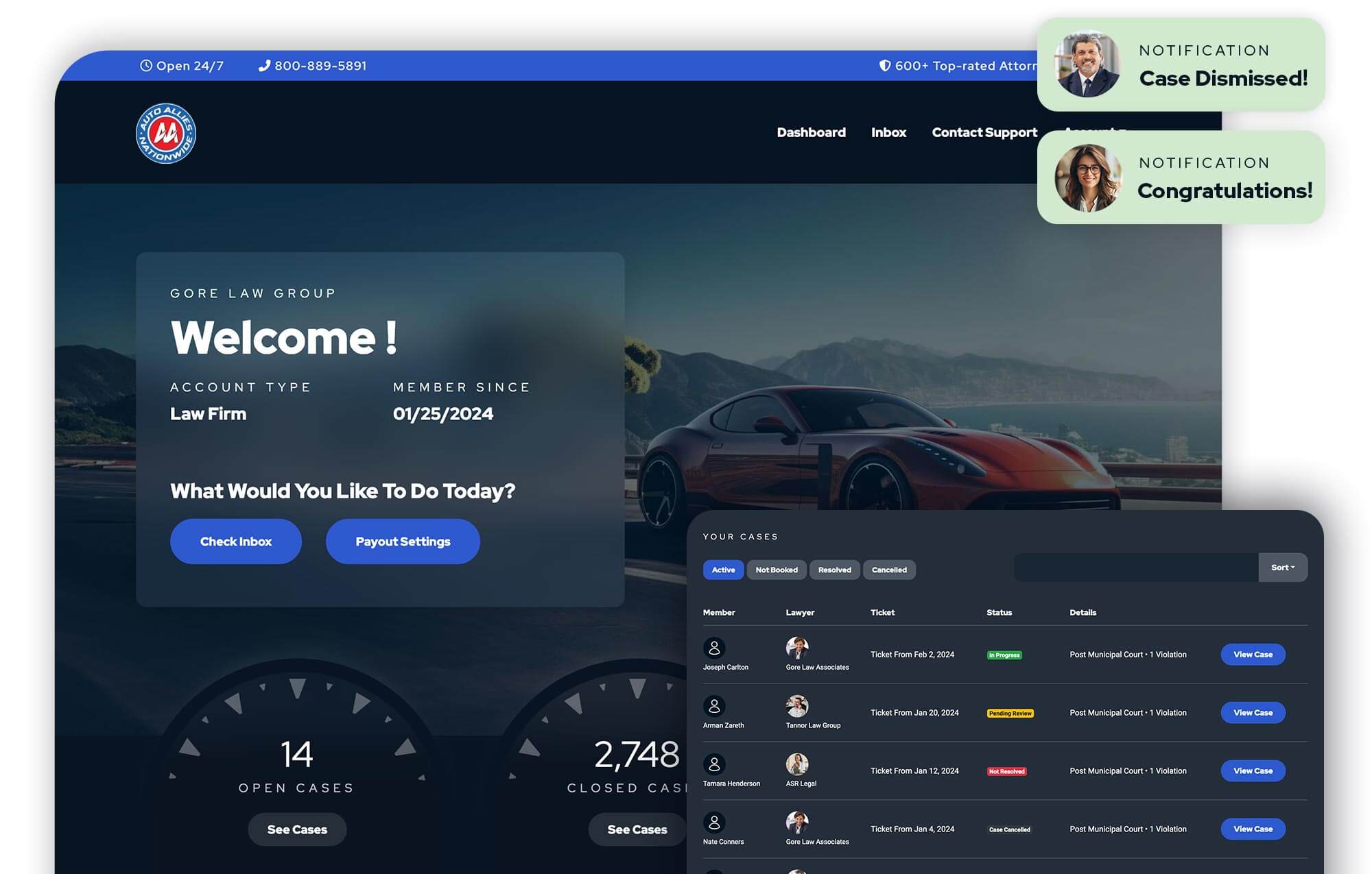 Once your ticket is uploaded, our AutoDefense™ Mode springs to action aligning your case with the perfect lawyer and preparing your defense automatically for you.